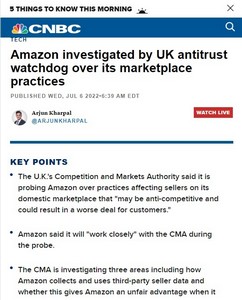 值得一提的是,日前,英国反垄断监管机构竞争与市场管理局(CMA)宣布,已对亚马逊展开了一项反垄断调查,旨在评估亚马逊是否偏袒自己的卖家,从而让其平台上的第三方卖家在竞争处于劣势。