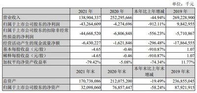 苏宁易购这些年的情况也是有目共睹,其股价跟2008年初的峰值相比已跌去97%,总市值只剩206.68亿元人民币。从苏宁易购4月底公布的2021年年报来看,其营收一年比一年少,亏损一年比一年多,2021年归属于上市公司股东的净利润更是同比减少了912%。