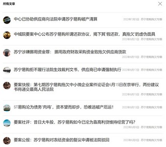 值得一提的是,帮助这两家供应商追讨欠款并申请破产清算的中城院要案中心,其官网介绍自己是“从事重大疑难复杂案件论证和探讨的法律服务机构”。然而其首页的文章从2021年底至今,几乎都是对苏宁易购的负面评论。