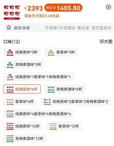 在某电商平台甚至有店铺标出经典原味1405.8元/6杯的天价,折合234.3元/杯,较原价溢价超3倍。但截至发稿,该店铺还未有成交记录。