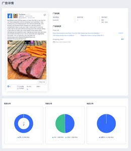 同时,所有的广告创意都以卡片的形式呈现,卖家能够直观地看到广告的全方位数据(所属渠道、投放时间范围、素材格式、广告热度趋势等),还能清晰了解广告的受众信息,包括受众性别、年龄以及地区分布情况,从而帮助卖家通过对比分析,快速找出最优的广告创意,把握热门广告特征。