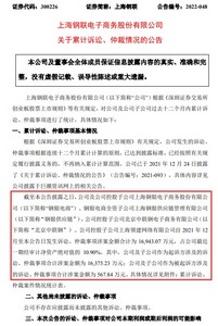 公告显示,截至本公告披露之日,公司及公司控股子公司上海钢银电子商务股份有限公司、钢银电商全资子公司上海钢银供应链管理有限公司,公司控股子公司北京中联钢电子商务有限公司、公司控股子公司上海领建网络有限公司自2021年12月至本公告日发生诉讼、仲裁事项涉案金额合计为16,943.07万元,占公司最近一期经审计净资产绝对值的10.90%。其中,公司及子公司作为起诉方涉及的诉讼、仲裁事项合计涉案金额为16,375.23万元;公司及子公司作为被起诉方涉及的诉讼、仲裁事项合计涉案金额为567.84万元。