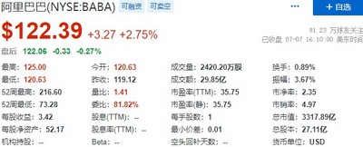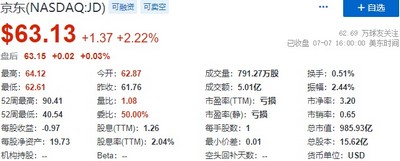 阿里巴巴涨2.75%,报122.39美元,总市值3273.93亿美元;京东涨2.22%,报63.13美元,总市值985.93亿美元。满帮涨2.51%,报9.41美元,总市值104.30亿美元;中通涨1.48%,报26.79美元,总市值216.93亿美元;蘑菇街涨1.44%,报2.11美元,总市值1758.64万美元;达达集团涨1.35%,报8.99美元,总市值23.40亿美元;拼多多涨0.88%,报62.23美元,总市值786.83亿美元。