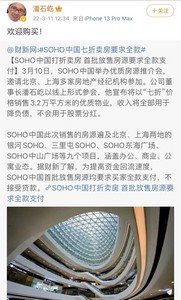 更夸张的是,潘石屹卖房的决心:这批房产,SOHO中国打算按照市场估值的七折出售!