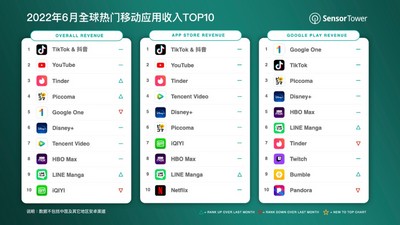 7月8日消息,Sensor Tower商店情报数据显示,2022年6月抖音及海外版TikTok在全球App Store和Google Play吸金超过2.83亿美元,是去年同期的1.4倍,蝉联全球移动应用(非游戏)收入榜冠军。