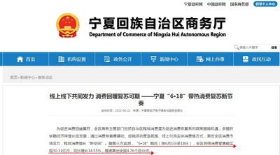 值得一提的是,近年来,宁夏多地大力发展电商业务。此前,宁夏商务厅第三方监测数据显示,“6•18”期间(6月1日至18日),宁夏区网络消费零售额实现30.31亿元,同比增长14.55%,增速高出全国4.76个百分点。
