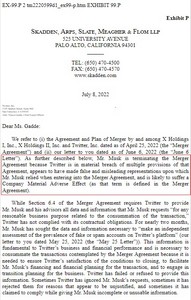 信中写道:Twitter“严重违反了合并协议的多项规定”,做出了“虚假和误导性陈述”,导致马斯克“可能遭受公司重大不利影响”,因此马斯克决定终止这项合并协议。