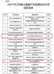 其中汇通达网络股份有限公司“汇通达基于产业大数据的农村商业数字化智能服务平台”项目、南京苏宁电子信息技术有限公司“苏宁大数据分析体系开放平台”项目、江苏京世大数据管理有限公司“宿迁市社会治理现代化指挥中心项目2021年第一批建设项目”入选。
