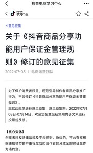 抖音电商修改抖音商品分享功能用户保证金管理规则