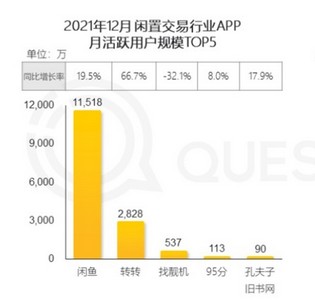市场逐渐扩大,用户数量也在飞速增长,《2021中国移动互联网年度大报告》显示,截至2021年12月,二手闲置交易类APP的月活跃用户数为1.45亿,同比增长19.7%,增长率为移动购物行业第一。