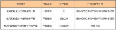 信用及销量炒作违规情节一般,平台会删除相关订单和产品的评价及销售记录;违规情节严重,账户处罚3张红牌,平台删除相关订单和产品的评价及销售记录;违规情节特别严重,账户处罚30张红牌,该卖家店铺产品全部下架。
