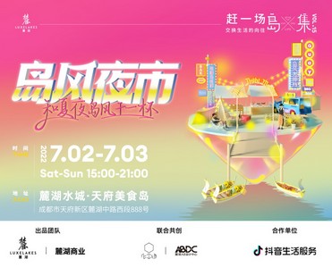 线下场景的构建,则与国内知名地产麓湖商业旗下的超级市集IP——岛集,在麓湖天府美食岛共创了一次岛风夜市。活动打造了微度假休闲目的地与城市热门餐饮联动的限定线下市集,也打破了生活服务品类的场景联名常规模式。