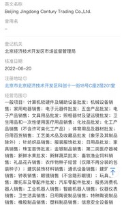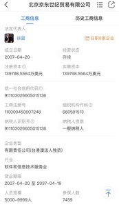 天眼查资料显示,北京京东世纪贸易有限公司成立于2007年4月,注册资本139798.5564万美元,法定代表人为徐雷,公司经营范围包括计算机、软件及辅助设备、机械设备、家用电器、电子元器件、五金交电、电子产品、文化用品、照相器材、化妆品及卫生用品、化工产品(不含危险化学品及一类易制毒化学品)、体育用品、百货、邮票、纺织品、服装、日用品、家具、金银珠宝首饰、避孕器具(避孕药除外)、新鲜水果、蔬菜、食盐、饲料、花卉、种子、装饰材料、通讯设备、建筑材料、工艺礼品、钟表眼镜、玩具、汽车和摩托车配件、机器人、仪器仪表、卫生洁具、陶瓷制品、橡胶及塑料制品、摩托车、智能卡、化肥、农药、牲畜(不含北京地区)的批发、佣金代理(拍卖除外)、零售、进出口及代理进出口业务等。