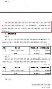 公告显示,公司于2022年7月10日召开第七届董事会第二十三次会议及七届监事会第二十三次会议,审议通过了《关于调整本次公开发行可转换公司债券募集资金金额的议案》。根据《中华人民共和国证券法》《上市公司证券发行管理办法》《可转换公司债券管理办法》等相关法律法规和监管要求及2021年第二次临时股东大会的授权,结合公司具体情况,公司拟对本次公开发行可转换公司债券募集资金总额进行调整。