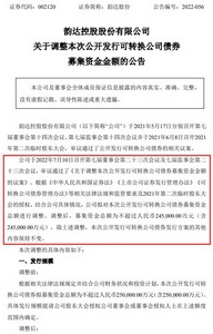 韵达股份 公司拟将本次可转债募集资金总额调整为不超24.5亿元