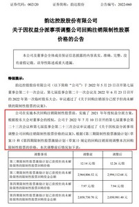韵达股份因权益分派事项调整公司回购注销限制性股票价格