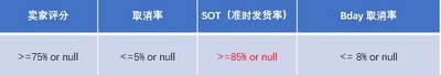 具体报名门槛如下:卖家评分≥75%;取消率≤5%;SOT(准时发货率)≥85%;Bday取消率≤8%。具有上述指标的卖家才可参与99大促活动报名。