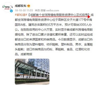 另据宋以佳透露,2018年10月落地的成都全球跨境电商服务资源中心,目前正在加快第二阶段的建设运营,预计今年9月将全面建成线上线下融合发展的一站式服务中心,持续为成都跨境电商产业发展提供更高效更便捷的公共服务及综合服务。