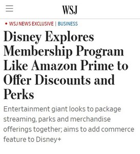 迪士尼计划推出类似亚马逊Prime的会员计划
