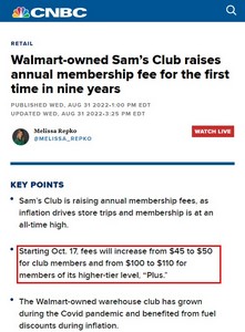 沃尔玛旗下山姆会员店将于今年秋季上调会员年费