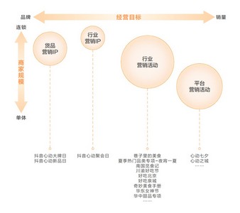 营销活动则能助力商家实现短期爆发价值与长期加速价值。商家根据自身不同的经营规模和经营目标,参与抖音生活服务发起的平台活动,也可以基于新品上市、优惠促销、周年庆、门店营销等营销需求,利用平台资源自主发起营销活动。目前营销活动可以划分为四大类型,包括平台营销IP/活动、货品营销IP/活动、行业营销活动/IP和商家自营销活动。