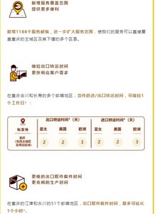 更晚的出口取件截件时间与更充裕的生产时间方面,在重庆的江津和永川的51个邮编地区,出口取件截件时间,最多可延长1个小时。