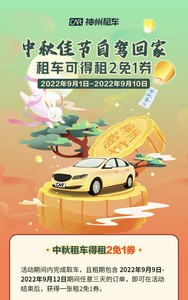 9月8日消息,近日,随着中秋节临近,神州租车上线两项中秋节活动:中秋租车得租2免1券和新用户50元中秋专享券。