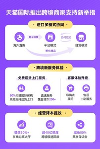 此外,天猫国际还推出多项降本提效的惠商举措,缓解跨境商家的经营压力。例如,协同支付宝为跨境商家提供超过40亿极速回款额度;在业界率先试行了保证金共享减免机制,减免50%保证金。