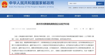 《措施》提出,要提高跨境物流服务水平,对跨境电商进出口业务通过海关监管代码9610等方式报关的,给予跨境电商物流企业不高于2元/票的物流费用补助,最高不超过20万元;对国际快件揽货的国际快件运营企业,给予国际快件运营企业不高于0.5元/票的操作处理补助,最高不超过20万元。