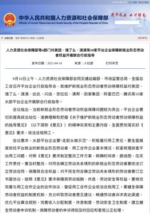 人社部等五部门对美团等11家平台企业开展新就业形态劳动者权益保障的行政指导