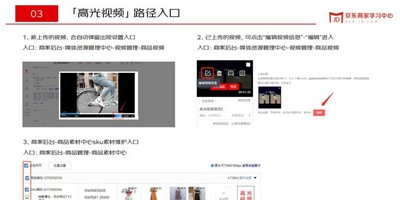 商家可在京麦商家后台-媒体资源管理中心-视频管理进行操作。新上传的视频,上传页面点击“确认上传”后会自动弹窗出现设置入口;已上传的视频,从“编辑视频信息”-“编辑”进入高光视频编辑页面;后续京东将在商品素材中心,新增“高光视频”维护入口。