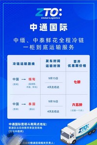 9月14日消息,中通国际东南亚管理中心日前正式开通中国(昆明)—缅甸(曼德勒、木姐、仰光)、泰国(曼谷)鲜花全程冷链一柜到底运输服务,为东南亚各国消费者送去鲜花。