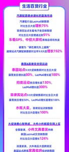 生活百货行业,汽摩配是稳步增长的蓝海市场。汽摩配行业Lazmall销售额对比生日大促增长75%。菲律宾站点车载电子类目销售额对比生日大促增速达到91%。车载GPS、中控大屏机等商品领衔热卖,越南站点汽摩配销售额对去年9.9大促增长192%。
