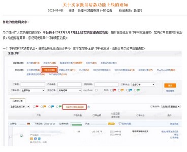 与此同时,敦煌网还发布关于卖家批量请款功能上线的通知,为了提升广大卖家请款的效率,平台于2022年9月13日上线卖家批量请款功能,届时针对已妥投订单可批量请款,如有订单包裹实际已妥投,轨迹存在异常,卖家仍可使用单个订单请款功能。