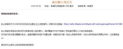 9月8日,敦煌网发布放心购上线公告,放心购版块于2022年9月9日完成试运营正式上线敦煌网。