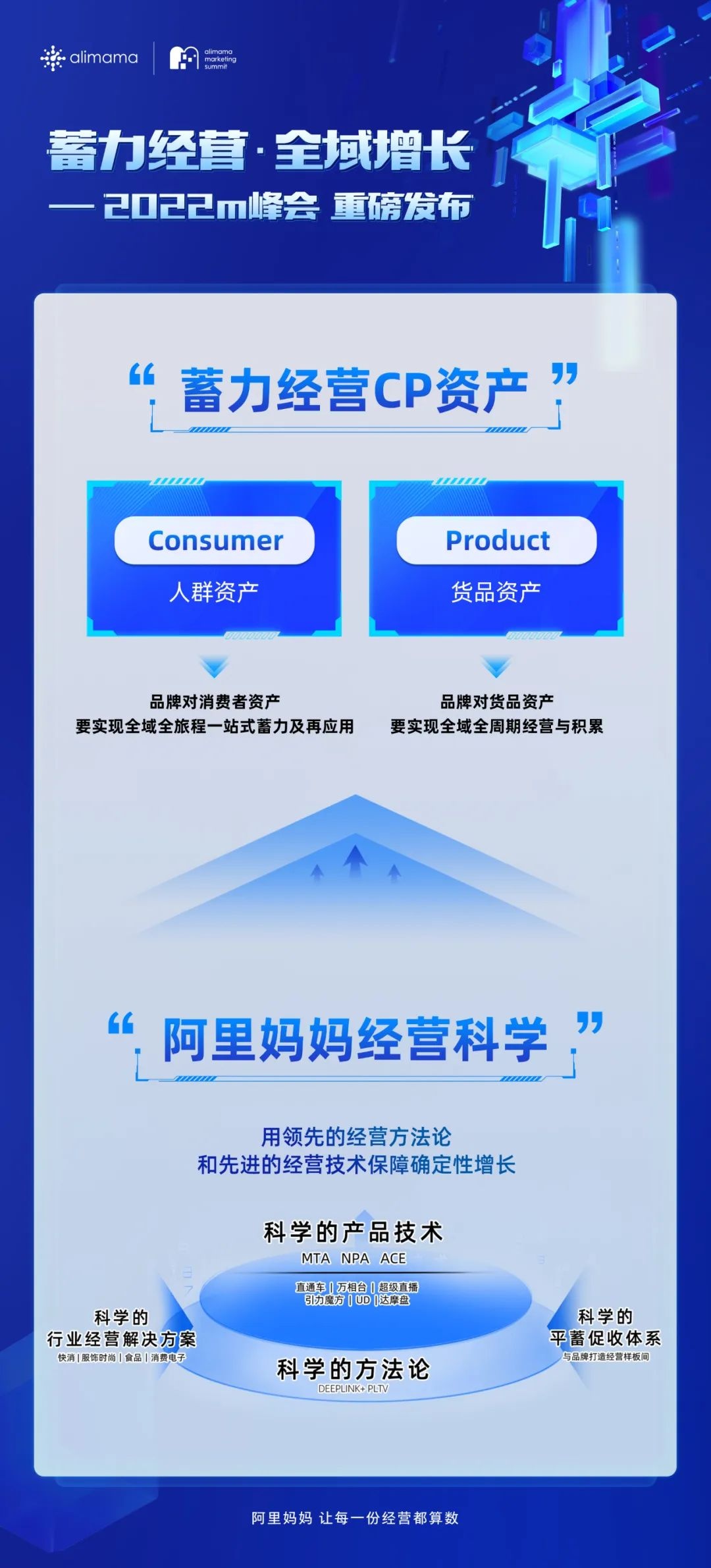 m峰会现场,阿里妈妈聚合全平台核心能力,发布全新“经营科学”,以科学的产品技术、科学的方法论、科学的行业经营和科学的平蓄促收体系,为经营效率提供确定性保障。