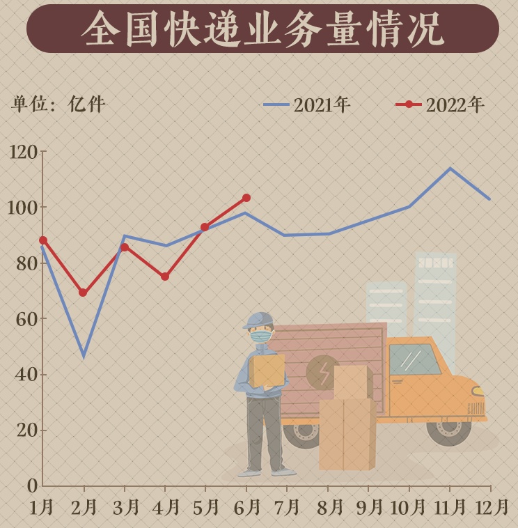 根据国家邮政局的统计数据,全国快递行业上半年合计实现营业收入4982.2亿元,同比增长2.9%。