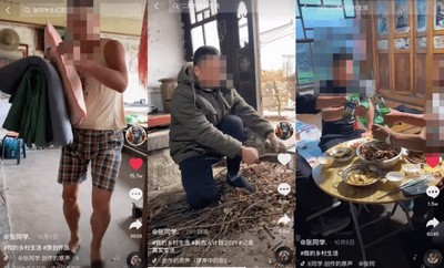 2021年10月才入驻抖音的张同学,住着破旧的乡下平房,带着工人常戴的针织手套,家里甚至没什么拿得出手的家电。视频与“精致”完全不沾边,内容记录的也全是“流水账”式的农村日常生活,起床、做饭、喂狗、养鸡......