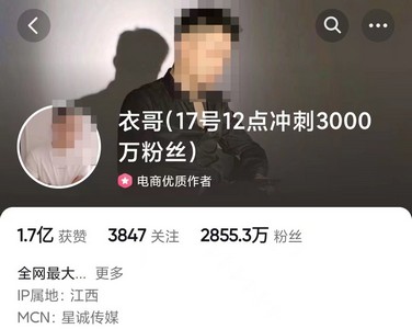 截至目前,衣哥在抖音平台拥有2855.3万粉丝。另据衣哥官方微信公众号信息显示,该账号认证主体为株洲星诚传媒有限公司。