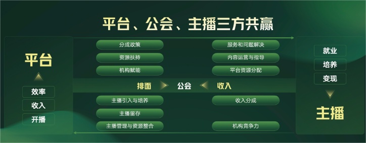 对平台来说,直播公会可以推动内容多样化与平台差异化竞争,商业空间巨大。而主播通过自身的流量带动公会发展,获取公会带来的商业变现能力,进而实现平台、公会、主播的三方共赢,完成有效循环。