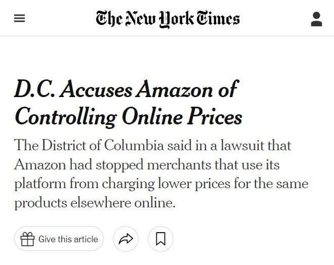值得一提的是,2021年5月,美国首都华盛顿哥伦比亚特区检察长卡尔·拉辛也曾宣布对亚马逊发起反垄断诉讼,指控其以反竞争的定价政策损害了第三方卖家的利益,抬高了消费品价格。