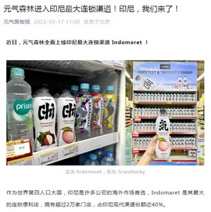 值得一提的是,元气森林官方披露,元气森林近日全面上线印尼最大连锁渠道Indomaret。据悉,Indomaret拥有超过2万家门店,占印尼现代渠道份额近40%。