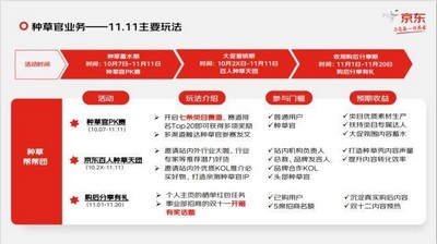 直播方面,今年京东11.11,京东直播将通过“京东闪播”、“总裁价到”、“行业直播日”、“11.11超级排位赛”、“城市LIVE生活节”五大玩法,让更多商家增加曝光量、提升直播转化率。
