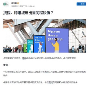 上周一份港交所公告显示,携程集团持有竞争对手——同程旅行的占股比例稍微减少。文件显示,此次占股比例减少规模极小,使携程在同程的持股比例从之前的26.14%降至25.99%。有业内人士猜测携程出售同程股份是为了避免反垄断行动的影响,但据知情人士解释,携程并未真正出售同程的股份。减持是由于向员工配股而增发同程股份,导致携程占股比例遭到稀释。