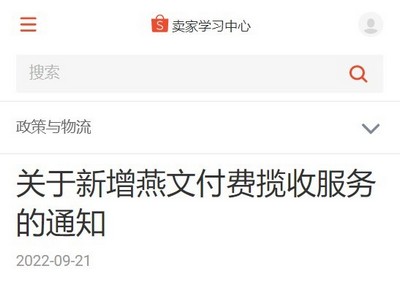 9月22日消息,Shopee平台日前发布关于新增燕文付费揽收服务的通知,此次新增了南昌、石家庄、郑州、成都、武汉、青岛、南京、合肥、长沙九个城市的燕文付费揽收服务。