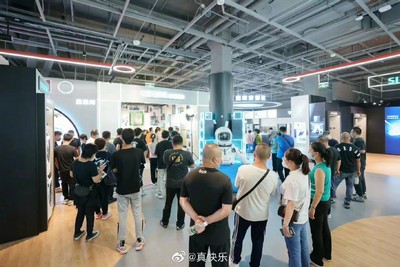 这一说法听起来玄乎,实际上就是将线下门店和真快乐APP打通,让顾客可以线上选购、线下体验提货。同时,线下店也继承了APP的“快乐”基因,注重娱乐性和可玩性。在这家新模式店里,划分出了科技智能品牌展区、全息投影区、游戏互动区、社交休闲区等多个主题区域,并配有视频导购、全息投影等装置。
