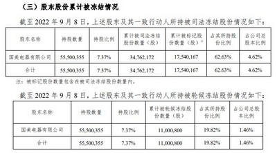 就在黄光裕大幅减持的前一天,也就是9月13日。中关村曾发布公告称,国美电器所持有中关村的6%股份被法院司法再冻结及轮候冻结。从这件事就能看出国美的资金链问题还是较为严重。
