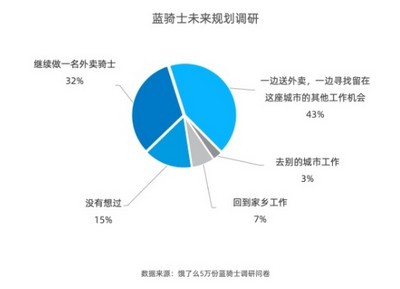 在饿了么的相关报告中,有43%的蓝骑士,选择一边送外卖,一边寻找其他工作机会。
