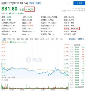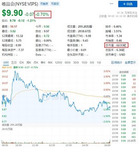 9月22日消息,热门中概股周三收盘多数下跌。其中, 趣活跌超17%,途牛跌近10%,逸仙电商跌超9%、达达集团、携程、汽车之家跌超8%,房多多跌超6%,唯品会跌近6%,报9.31美元,总市值59.18亿美元,满帮、盈喜集团、拼多多、大健云仓、新东方、百度、中通、BOSS直聘、京东、网易跌超5%,拼多多报62.49美元,总市值790.11亿美元,京东报53.93美元,总市值842.25亿美元,阿里巴巴、每日优鲜跌超4%,阿里巴巴报81.60美元,总市值2160.39亿美元,叮咚买菜跌超3%,哔哩哔哩跌超2%,新氧跌超1%。