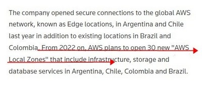 据悉,除了巴西和哥伦比亚的现有站点,亚马逊AWS还在阿根廷和智利开设了链接全球AWS网络的边缘站点。